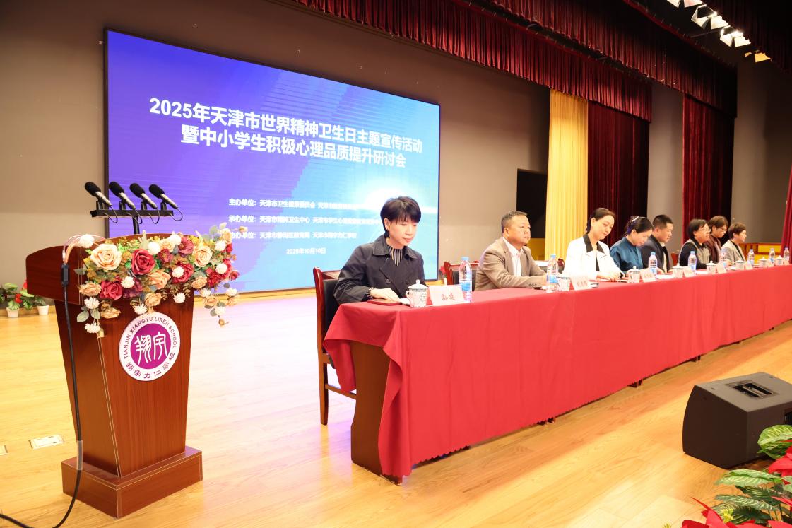 10月10日下午,由天津市卫生健康委员会、天津市教育委员会联合主办,天津市安定医院、天津市学生心理健康教育发展中心承办的“天津市2025年世界精神卫生日主题宣传活动暨中小学生积极心理品质提升研讨会”在天津市翔宇力仁学校举行。本次活动以“人人享有心理健康服务”为主题,立足新时代教育强国与健康中国建设战略交汇点,聚焦青少年心理健康服务体系构建,通过政策协同、专业引领与实践创新,为全市中小学生心理健康教育工作擘画高质量发展蓝图。